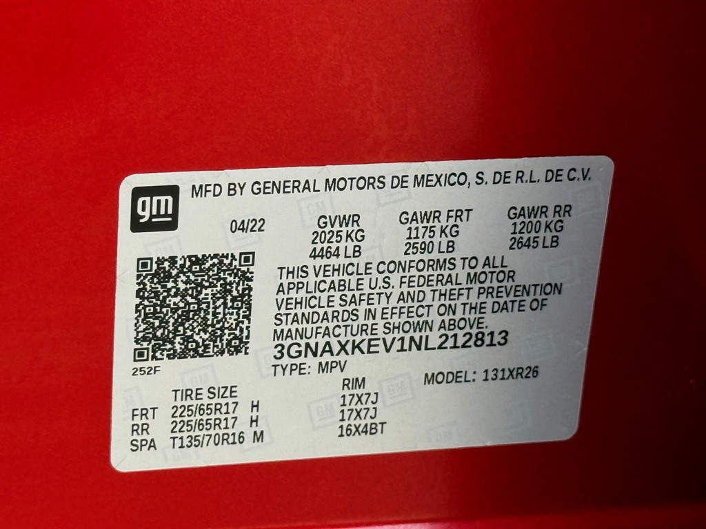 | VIN #: | 3GNAXKEV1NL212813 |